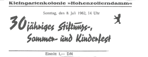 Am 08. Juli 1962 wurde ein 30-jähriges Stiftungs-, Sommer- und Kinderfest gefeiert.